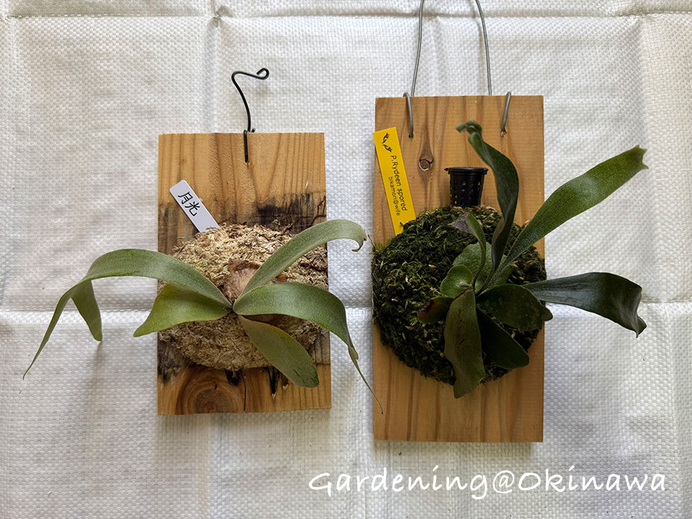 初心者ですがこの2つのビカクの板替えに挑戦しました。