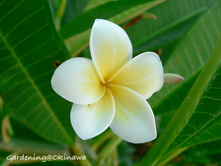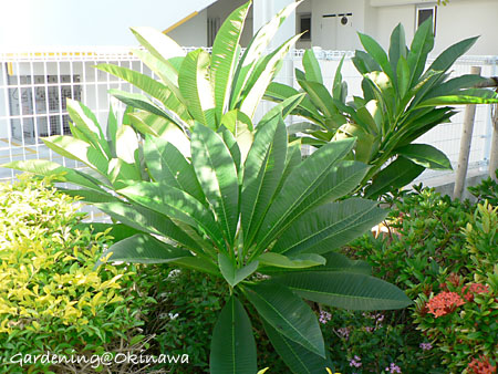 去年買ったプルメリアを今年の春に地植えして、やっと花が開いたと思ったら7月の 大型台風の直撃で見事に花がなくなっていました(涙)